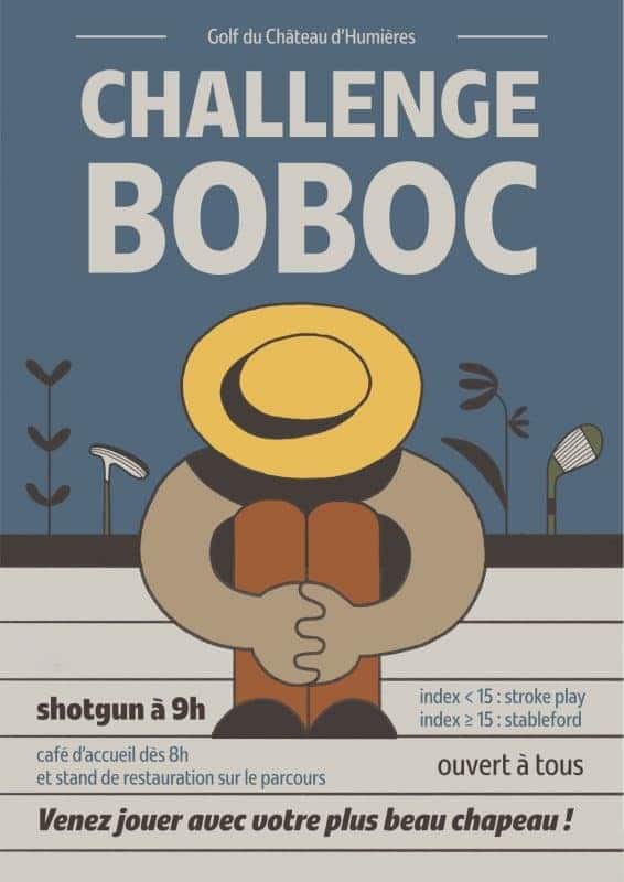 - Le challenge Boboc samedi 13 septembre : 18 trous en Stroke Play avec Stand et boissons, en rappel à notre cher ami. N’oubliez pas de venir avec votre plus beau chapeau!