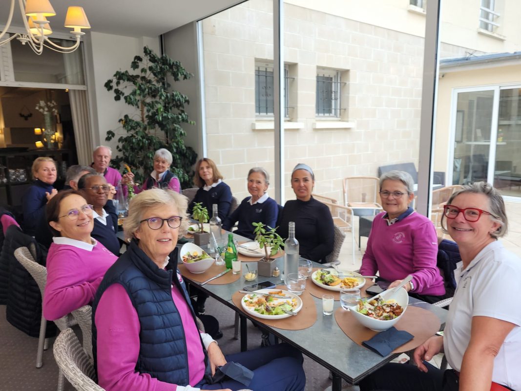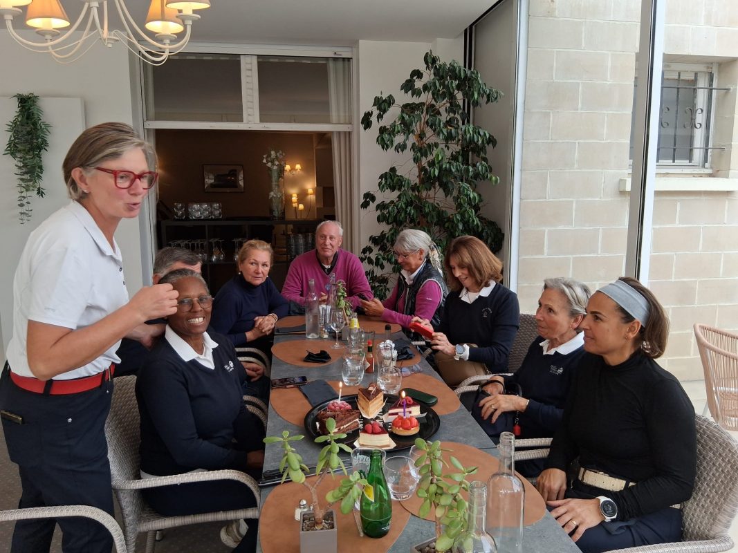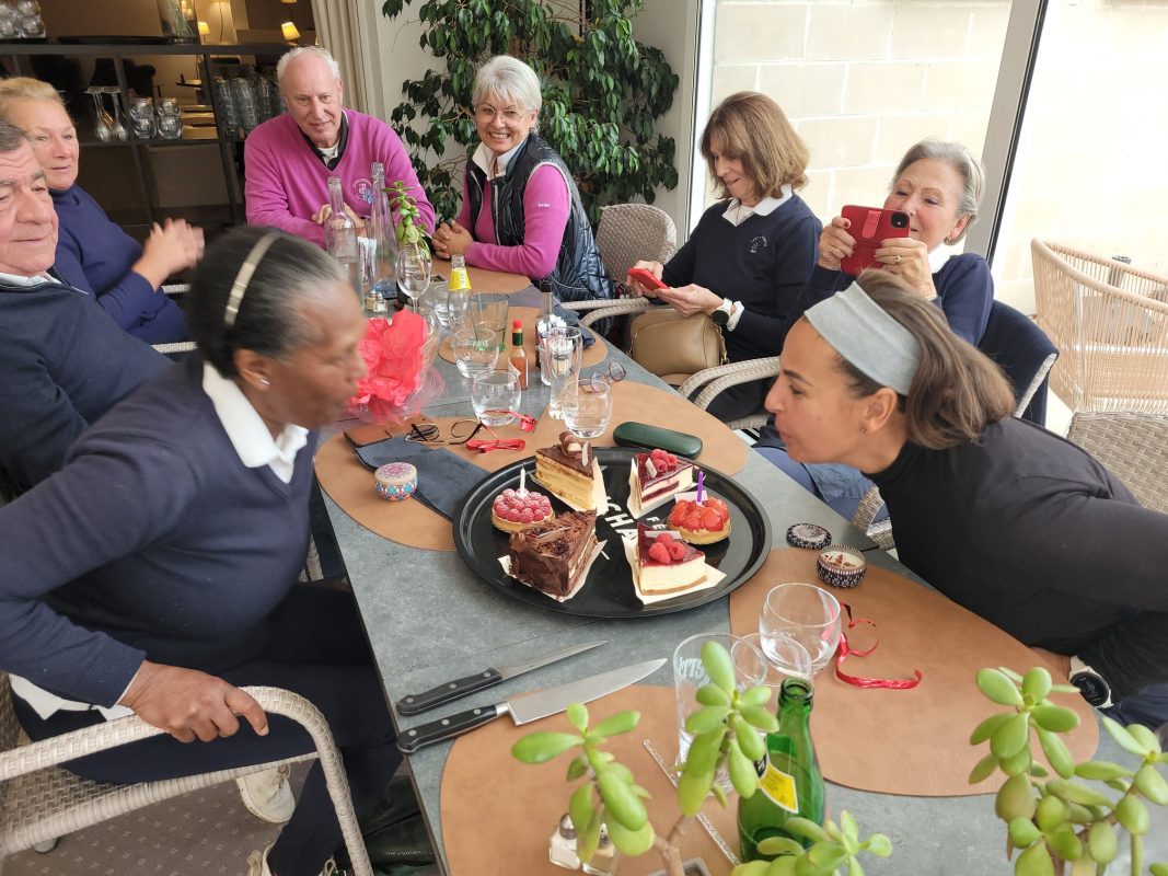 Après la rencontre, un dix neuvième trou a été très apprécié avec toutes les joueuses et caddy (ette) qui ont répondu présent. Ce fut l’occasion de fêter l’anniversaire de deux de nos adversaires. Merci au restaurant de nous avoir accueillies malgré l’heure avancée dans l’après midi.